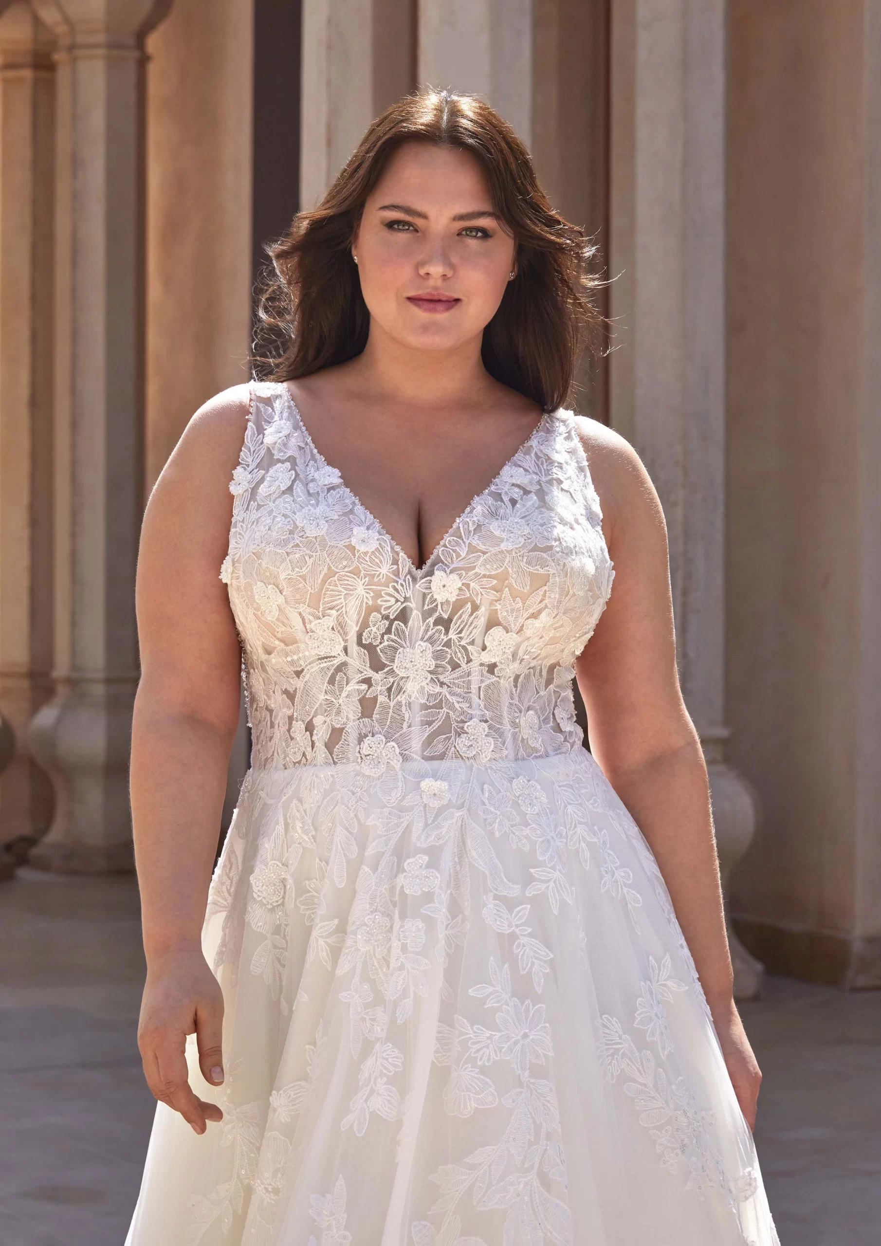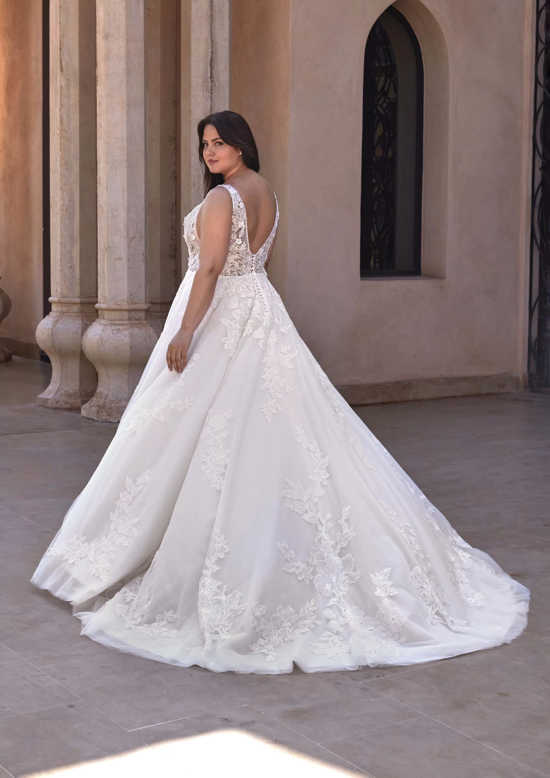 HURON es un modelo by PRONOVIAS. Es un vestido de novia con corte en A con escote de pico. Está confeccionado en tul. Tiene hermosos detalles en encaje en detalles florales y transparencias. Un look ideal para una novia que desea verse moderna, añadiendo un toque de romanticismo en su gran día.