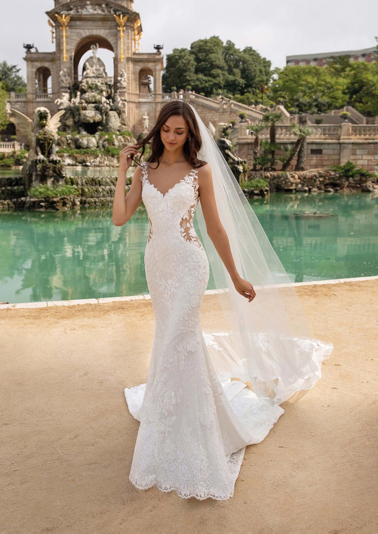 MOROCCO es un modelo by PRONOVIAS. Es un vestido de novia con corte sirena, tiene un escote de pico y espalda con transparencia. Es un hermoso modelo ideal para una novia que desea verse elegante y audaz en su gran día.