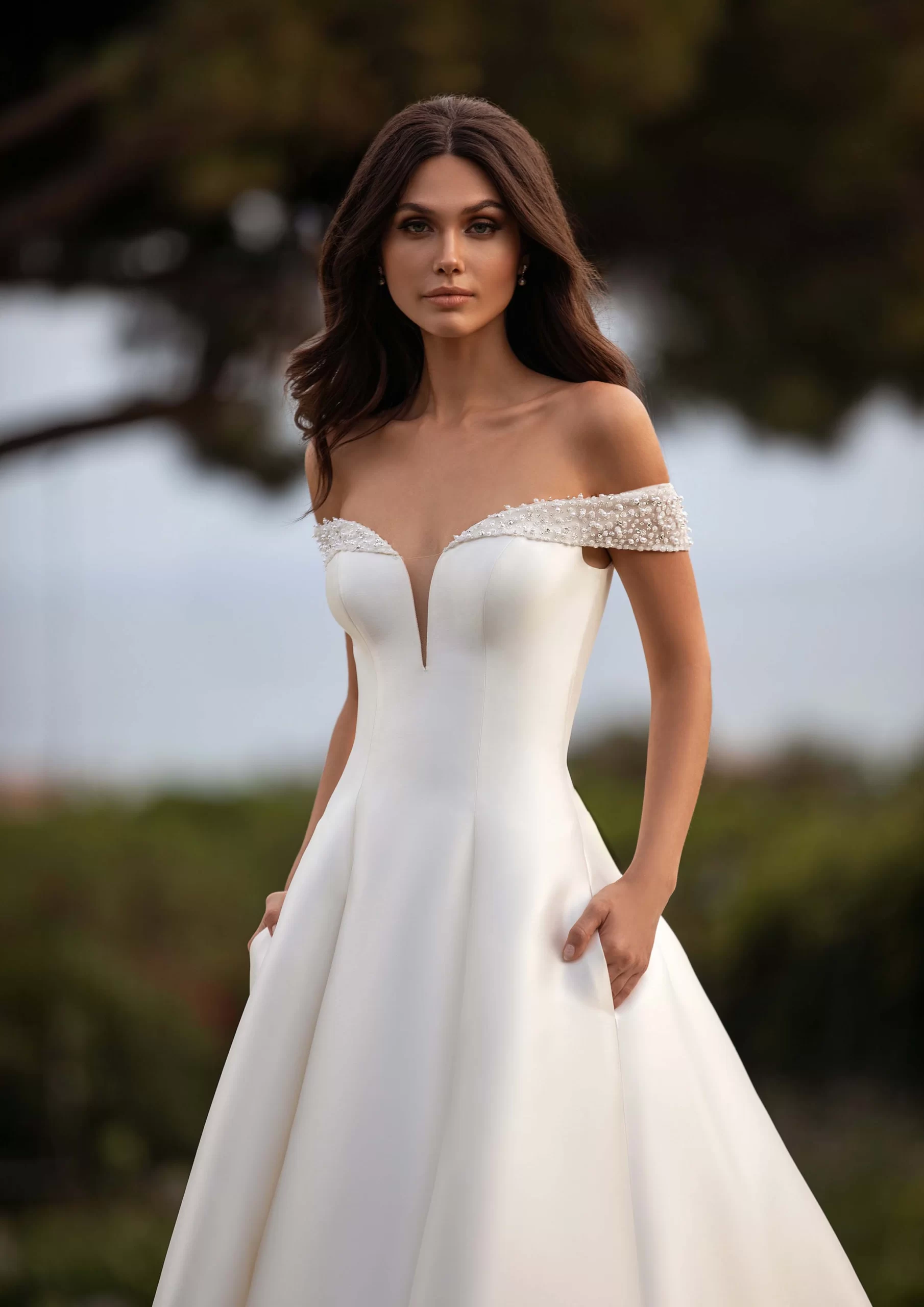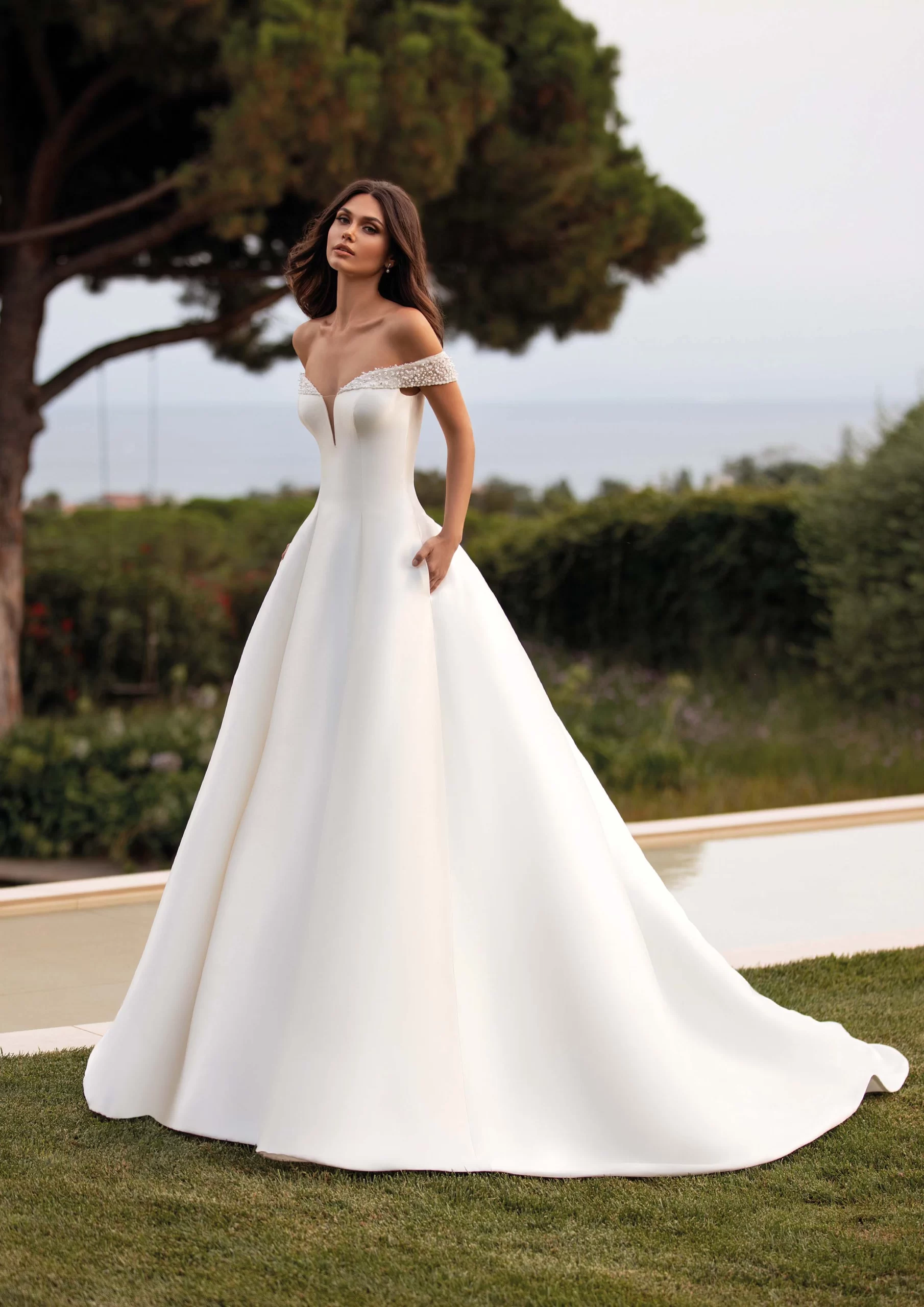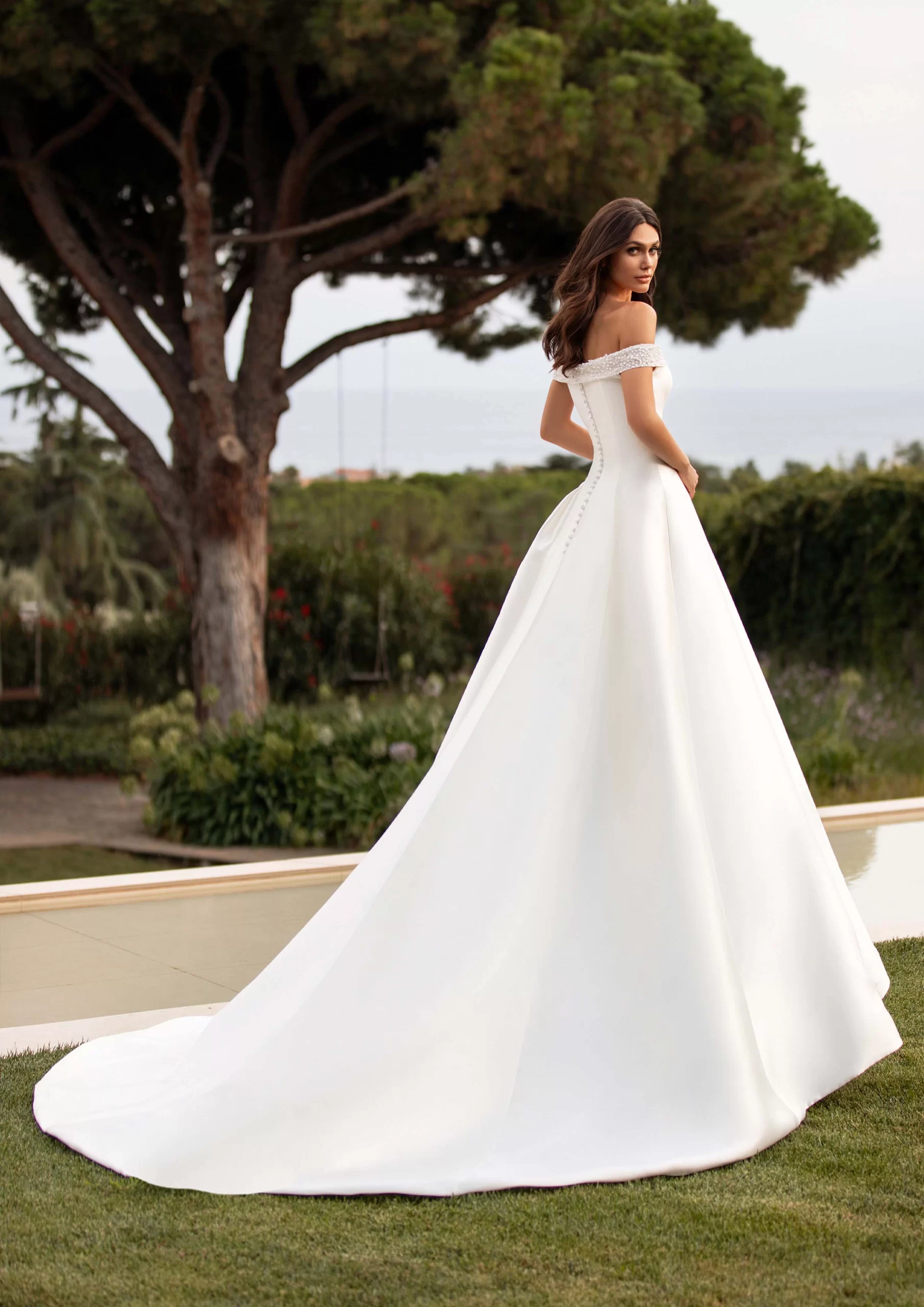 REA es un modelo by PRONOVIAS. Es un vestido corte princesa con manguitos y espalda descubierta, tiene un escote envolvente. Está confeccionado en mikado. Es un hermoso modelo minimalista, ideales para novias que desean un look elegante con un toque de romanticismo.