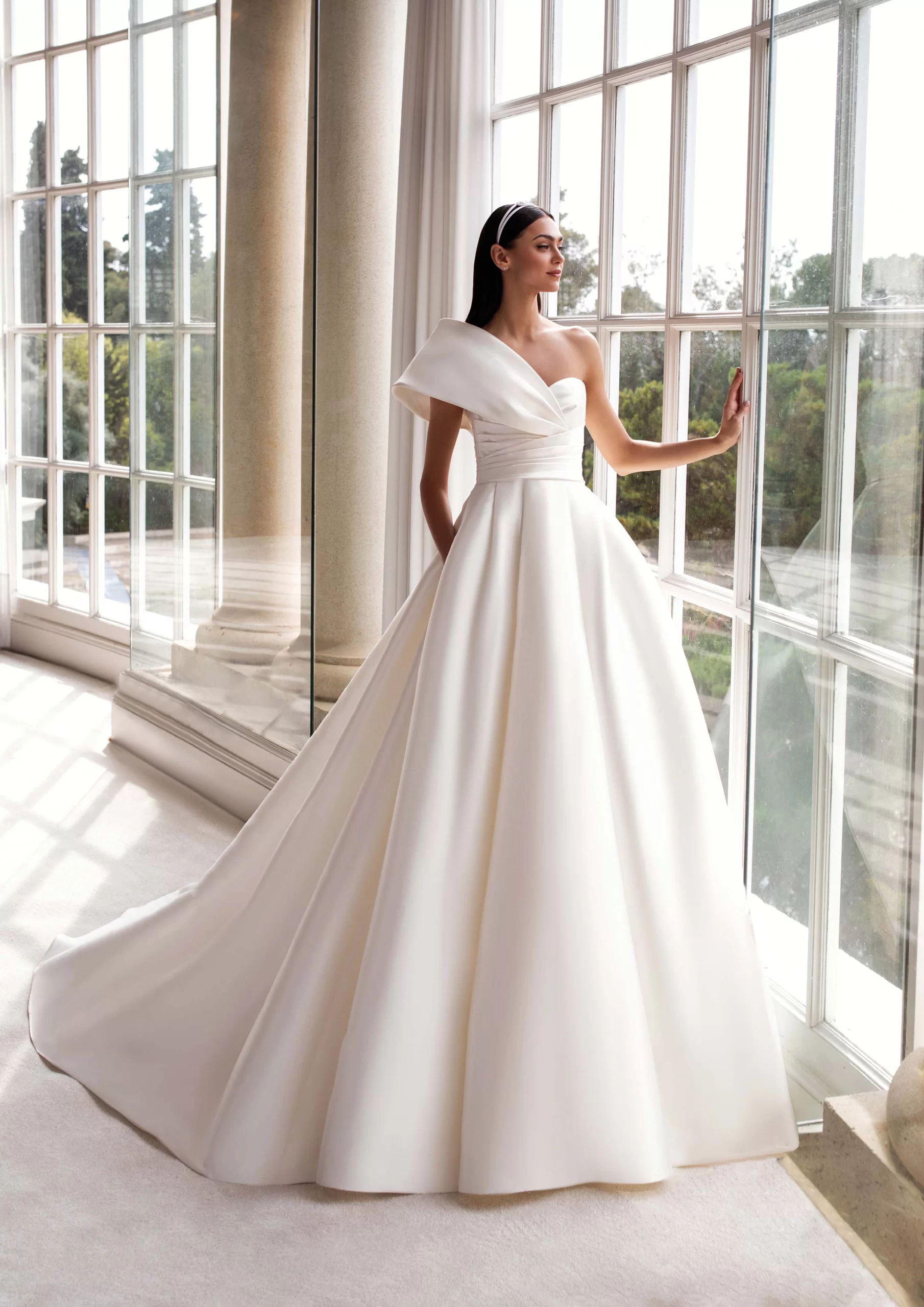 SEDNA es un modelo by PRONOVIAS. Es un hermoso vestido de novia con corte princesa, escote asimétrico y manga corta. Está confeccionado en mikado. Ideal para las novias que desean un vestido elegante, clásico y con un toque de romanticismo. ¡Se convertirá en el vestido de tus sueños!