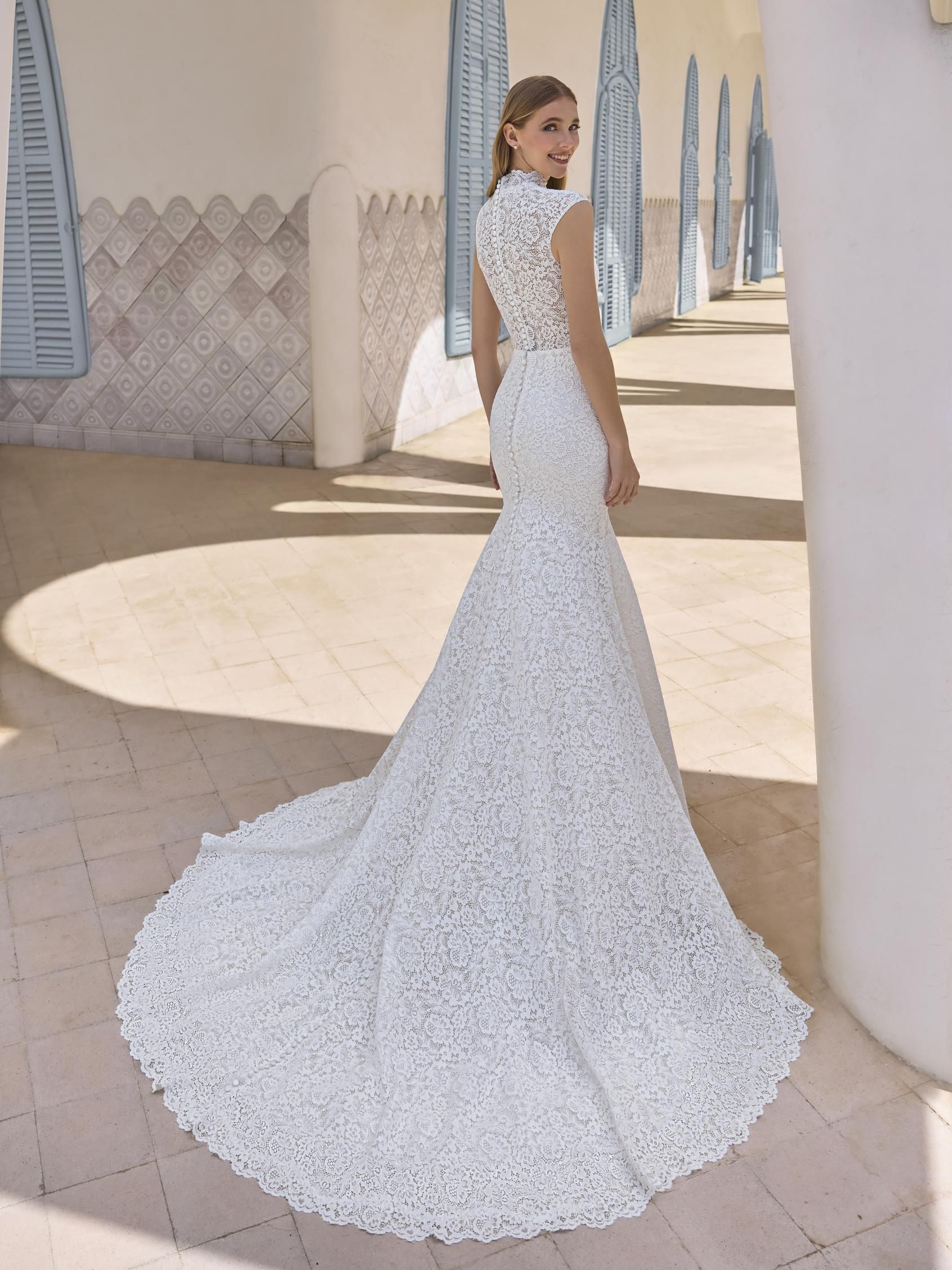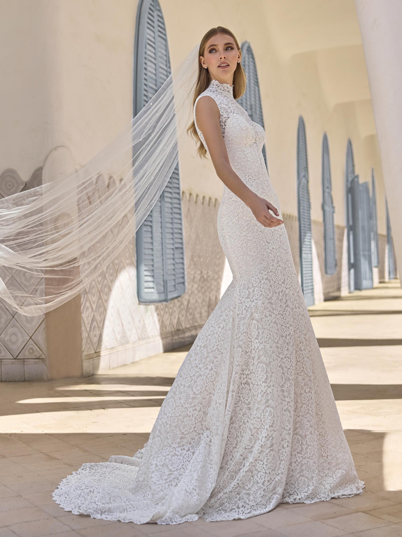 TAMASIN es un vestido corte sirena, con un escote en forma de corazón y pecho y espalda cubierto de encaje. Es un modelo modesto y elegante que resalta tu figura. El vestido ideal para tu gran día. Te enamorarás de él desde el primer momento. TAMASIN es un diseño de PRONOVIAS.