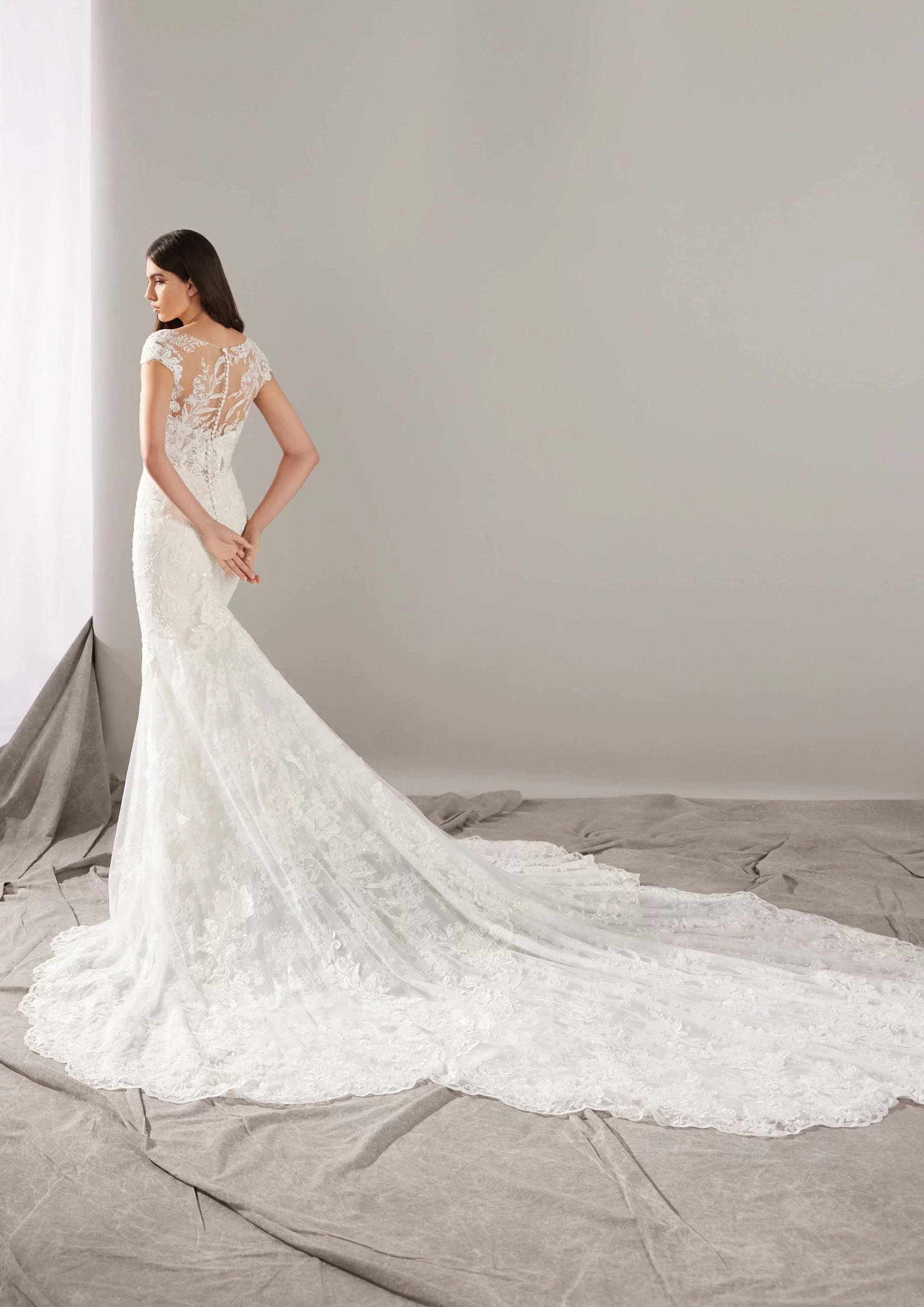 TURAN es un modelo by PRONOVIAS. Es un hermoso vestido de novia corte sirena con escote corazón. Lleva detalles de encaje y espalda ilusión, enfatizando en los detalles florales que se encuentran en tendencia. Es un modelo ideal para una novia que desea lucir un look elegante y clásico, pero atrevido al mismo tiempo. ¡Te enamorarás por completo de él!